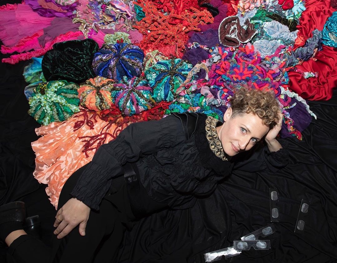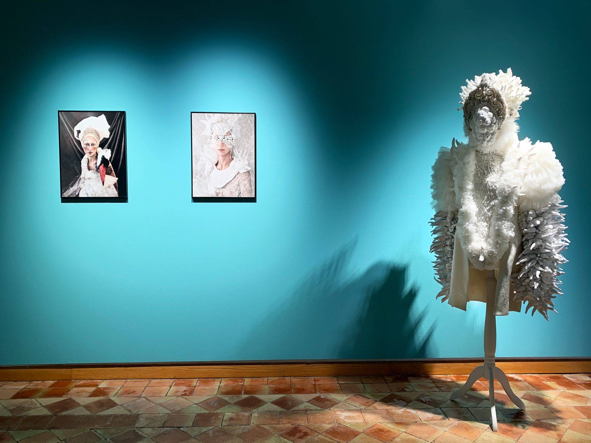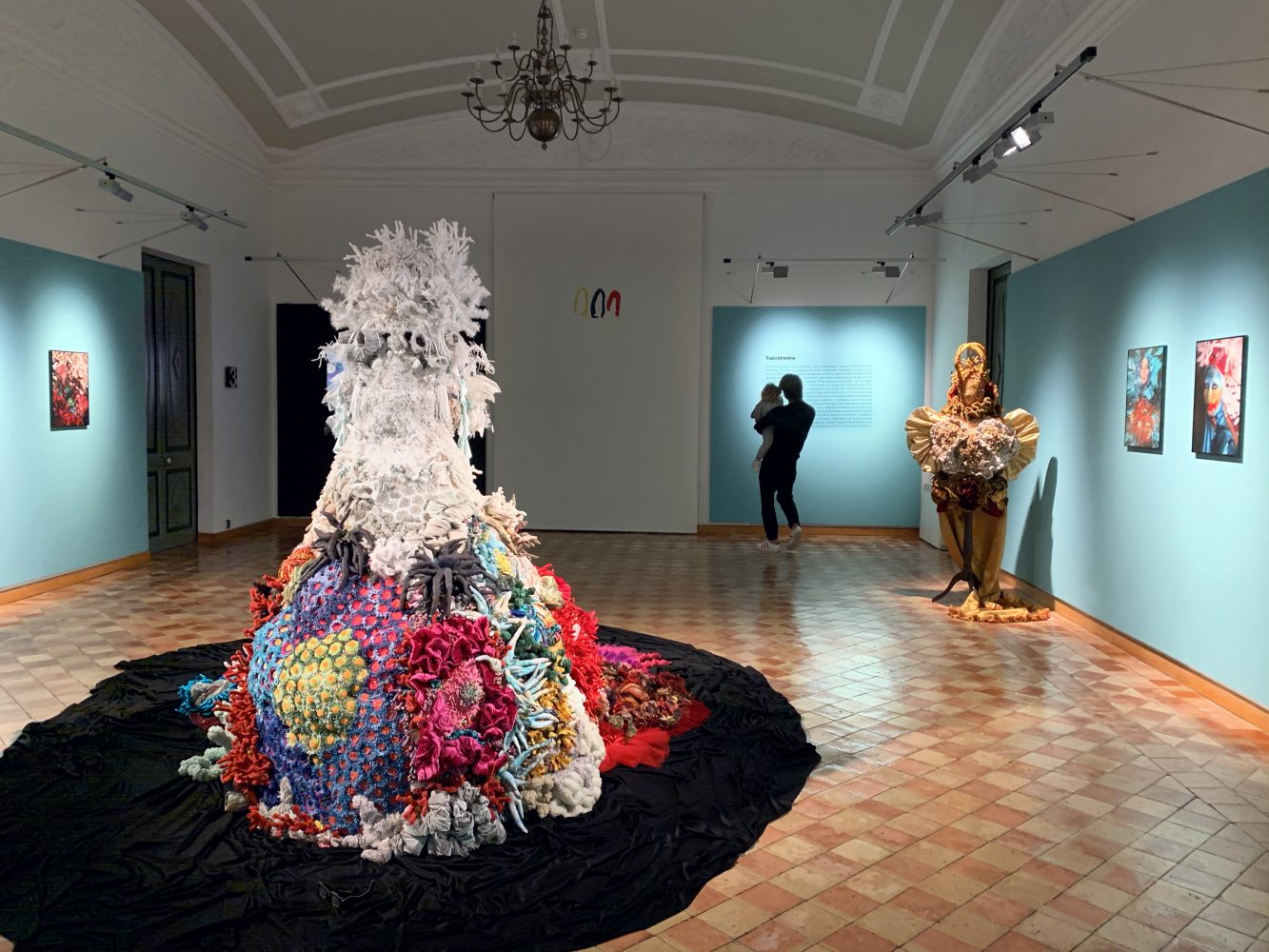 In Breathing Waves, Paola Idrontino – a.k.a. “Papayapie”– shows her fascination produced by the sea. At the same time, the artist tries to understand the strange way in which humans relate to this extremely powerful entity on our planet, which breathes life, and that literature has described as a metaphor of life. British author Philip Hoare reminds us: “The sea, like the imagination of the writer or the artist, carries all kinds of obsessions, stories and ambitions.” Paola Idrontino’s photographs and textile sculptures also express affection for tales and myths, with references to a feminine world that professes to be the protective deity of underwater creatures. To honour the physical dimension of the oceans, the artist chooses to represent its beauty – exuberant and chromatic – assuming it as a metaphysical context that defines and connects us. However, the majestic anthropomorphic creations sewn by Idrontino’s hand, also magnify with their preciousness the other side of the mask and what is hidden under the disguise: a condition of fragility and climatic urgency – like the whitening of coral reefs – that instigates the participation, interpretation and awareness of the viewer. Submerging oneself in art has a lot to do with submerging oneself, without knowing what will happen when you delve into its waters, and facing Paola Idrontino’s work we penetrate an extraordinary abyss, simultaneously perceptible and hidden, that sensitizes us with each wave. (by Laura Cornejo Brugués, exhibition curator)