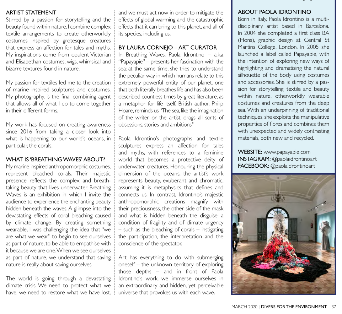 My work mentioned in the Emirates Diving Association quarterly magazine called Divers for the Environment.