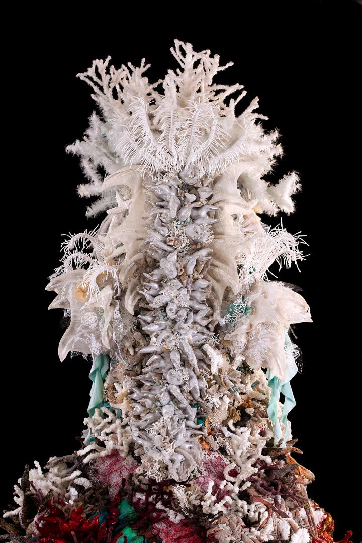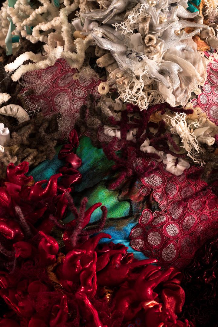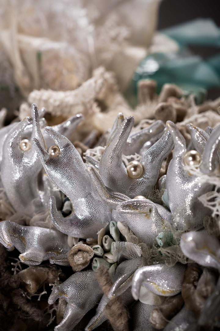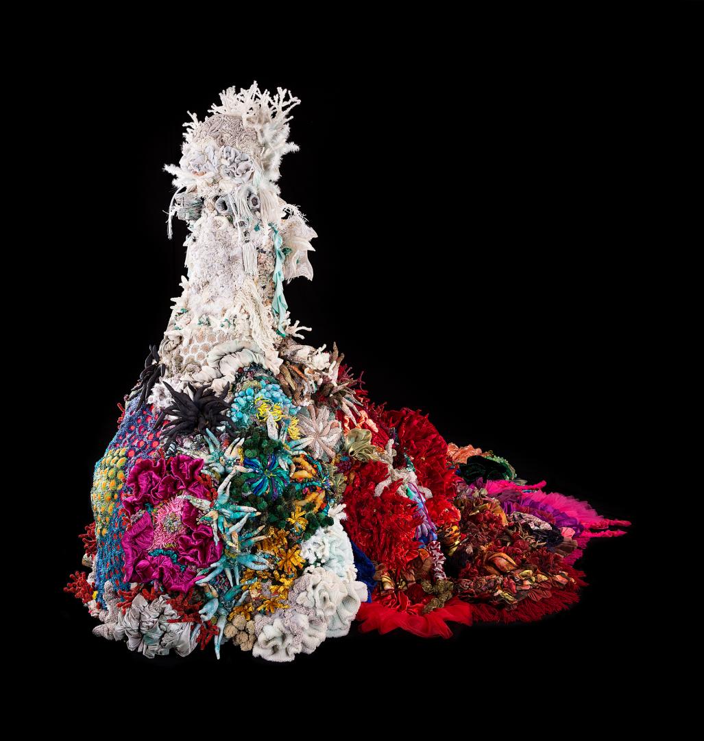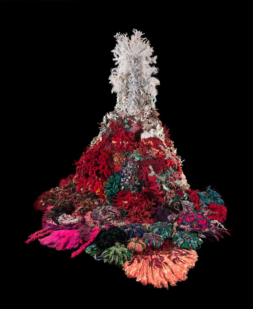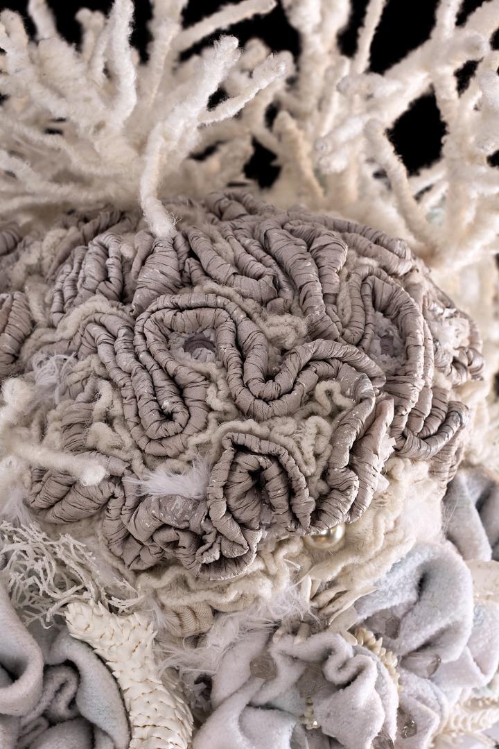 Evanescent is a textile sculpture that portrays coral bleaching caused by climate change. This project took two years to complete. It is entirely handmade using a variety of fabric, most of which is recycled.