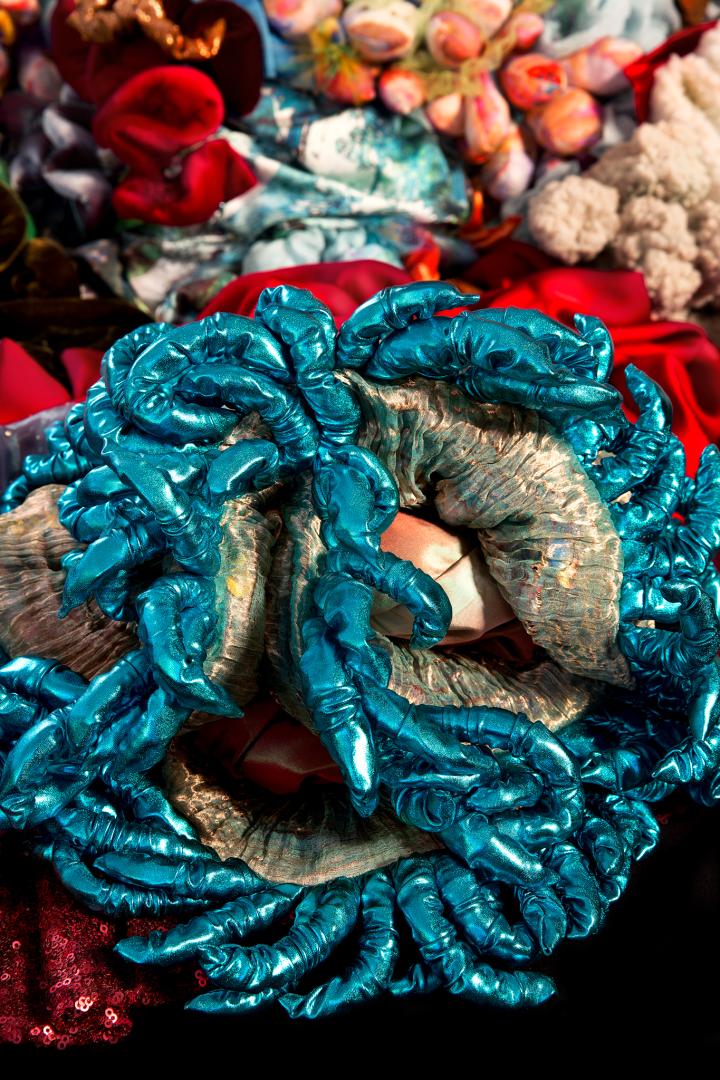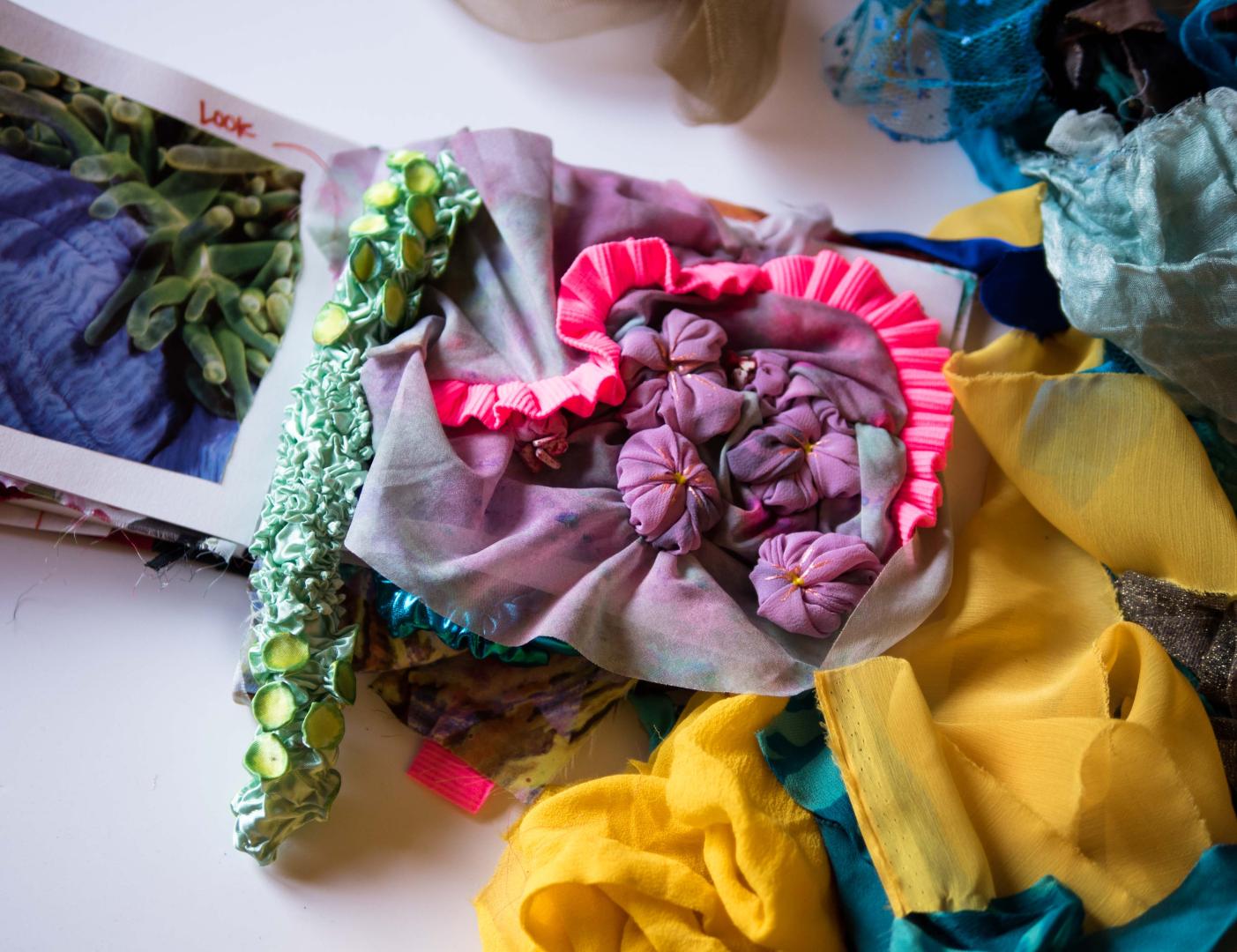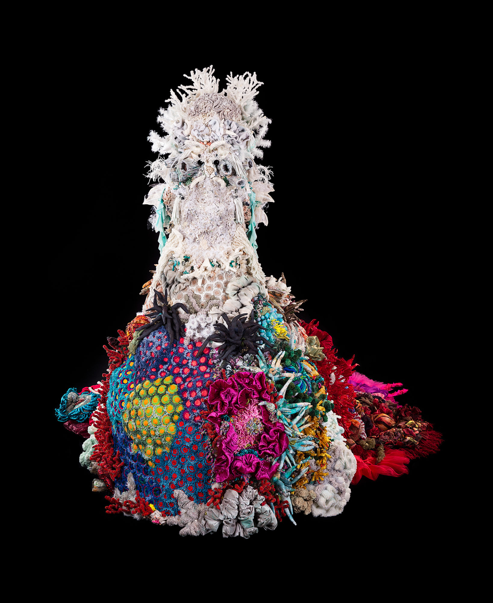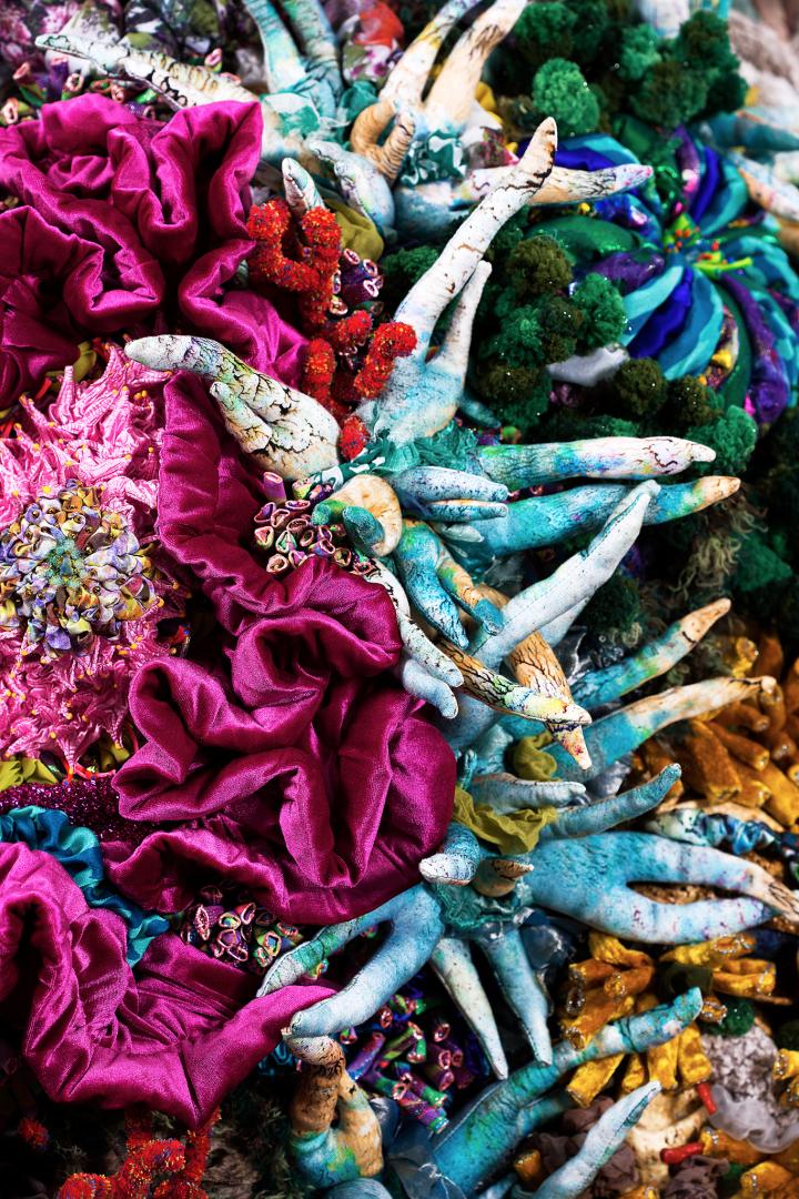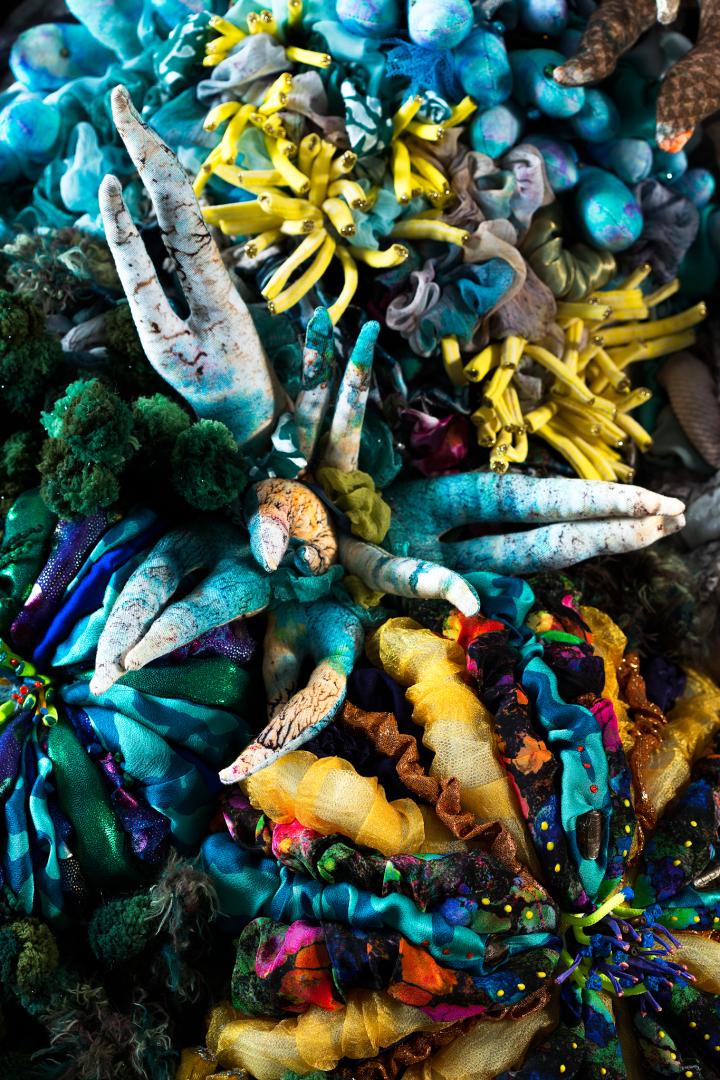 Evanescent is a textile sculpture that portrays coral bleaching caused by climate change. This project took two years to complete. It is entirely handmade using a variety of fabric, most of which is recycled.